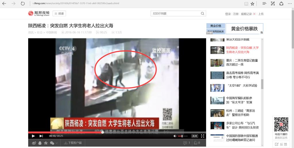 【凤凰视频】陕西杨凌:突发自燃 大学生将老人拉出火海