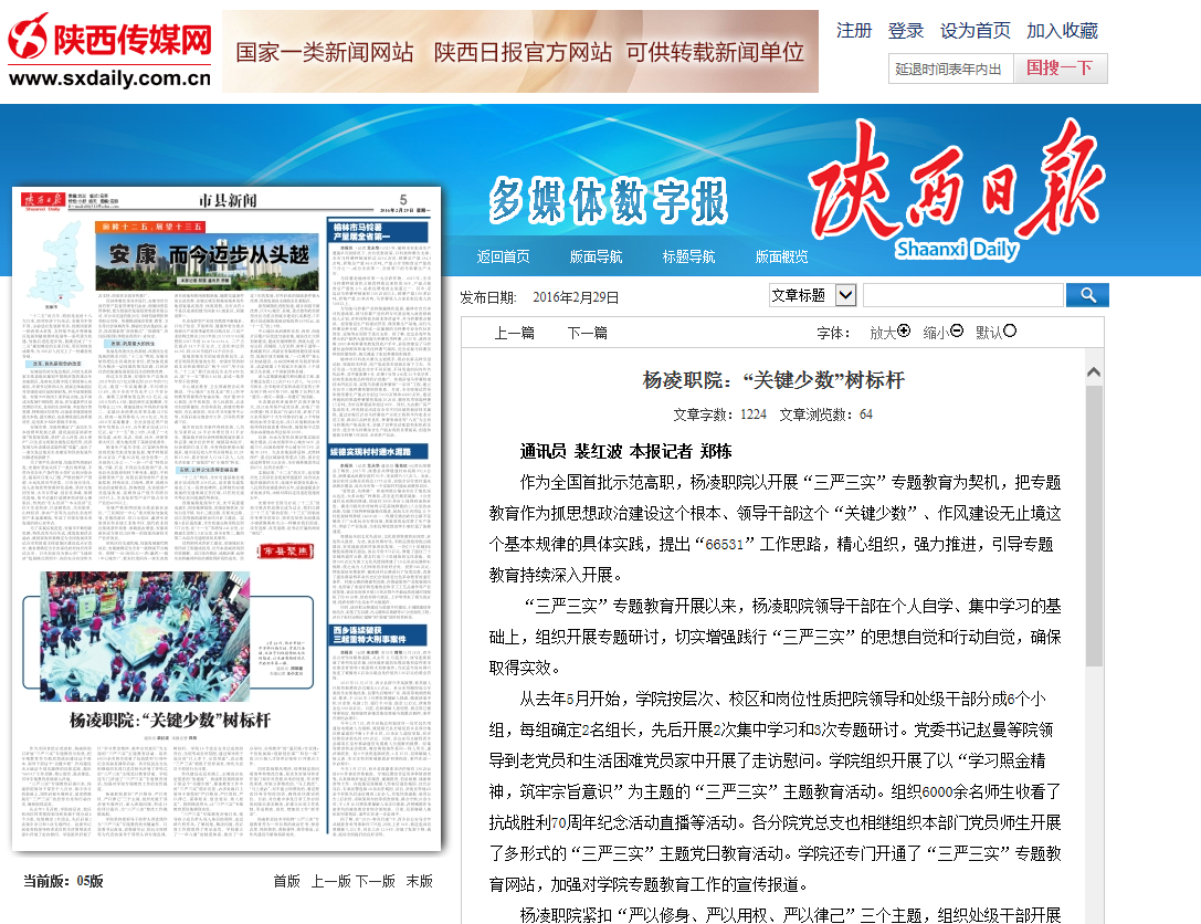 【陕西日报】杨凌职院:“关键少数”树标杆