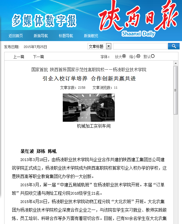 ,由杨凌职业技术学院与企业合作共建的陕西建工集团总公司建筑学院正式成立,杨凌职业技术学院成为陕西高职院校首家引企入校办学的学校,这是陕西高等职业教育集团化办学的一大创新。
