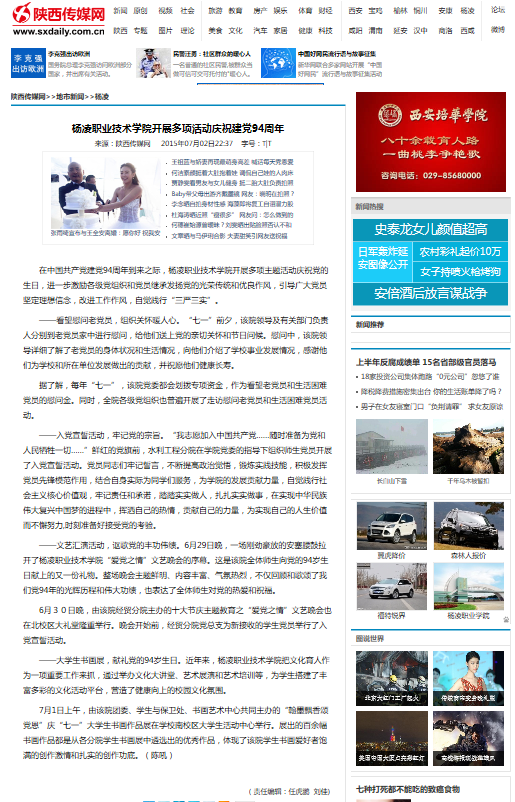 【陕西传媒网】杨凌职业技术学院开展多项活动庆祝建党94周年
