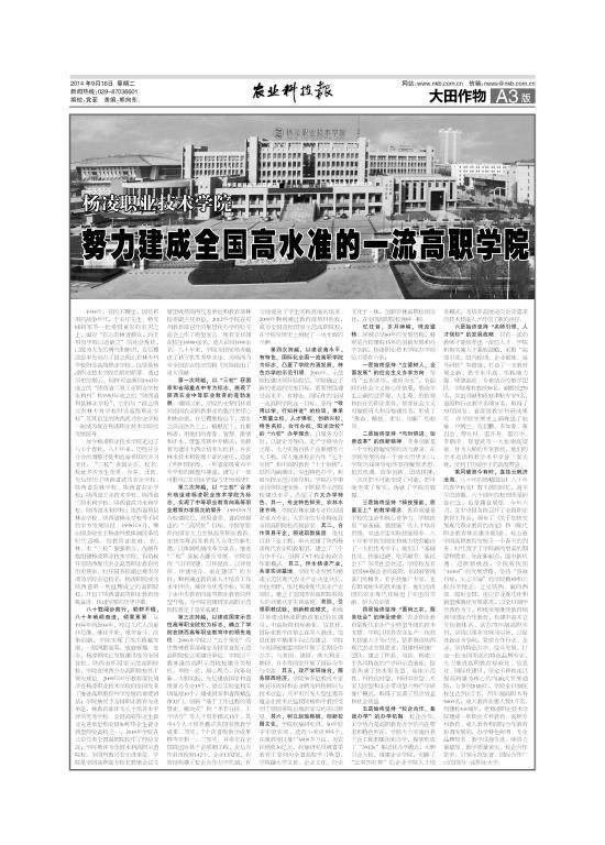 【农业科技报】杨凌职业技术学院 努力建成全国高水准的一流高职学院